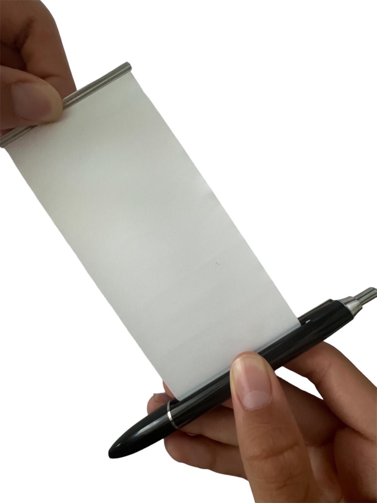 - Diskrétní a nenápadné: Rolovací papírek je skrytý uvnitř pera, takže nikdo nepozná, že ho máš.